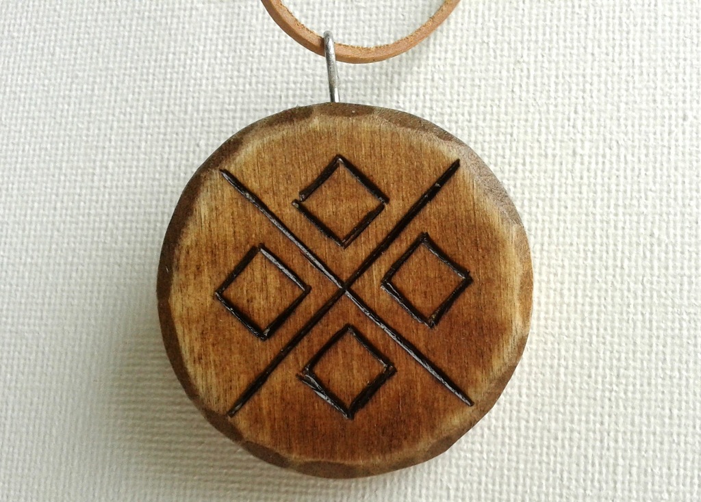 Rysunek 17 Współczesne zawieszki z symbolami Welesa (po lewej) i Mokoszy (po prawej) [źródło] [źródło]